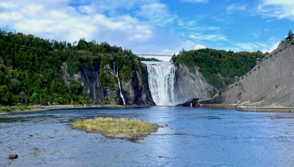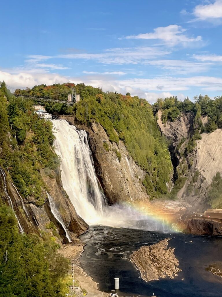 Building on my trip to the forest, the next day I continued nature bathing at Montmorency Falls (aka Chutes de Montmorency) located on the eastern edge of Quebec City. This trip fell just before autumn colors, but I got a small glimpse of the season to come.